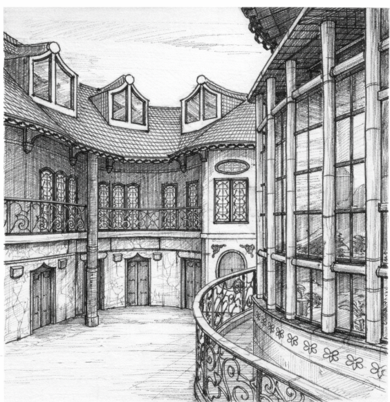 “An early twentieth-century, oneiric composition. An entrance house opening onto the Citadel main street, and a principal axis unfolding across the lake toward the mountains.”