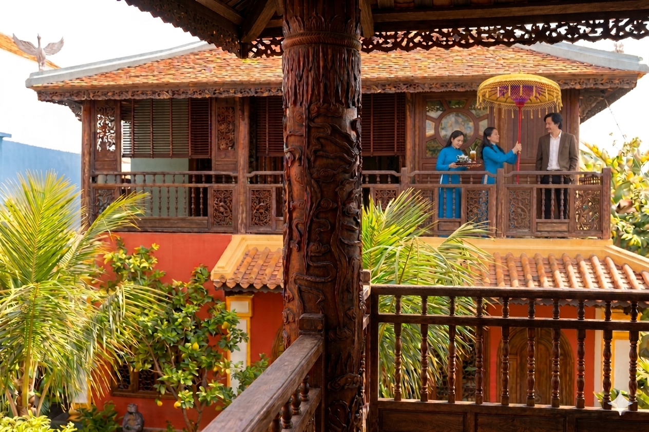 “A recreation of a princely dwelling in traditional Huế style, rooted in lineage, proportion, and ceremonial order.”