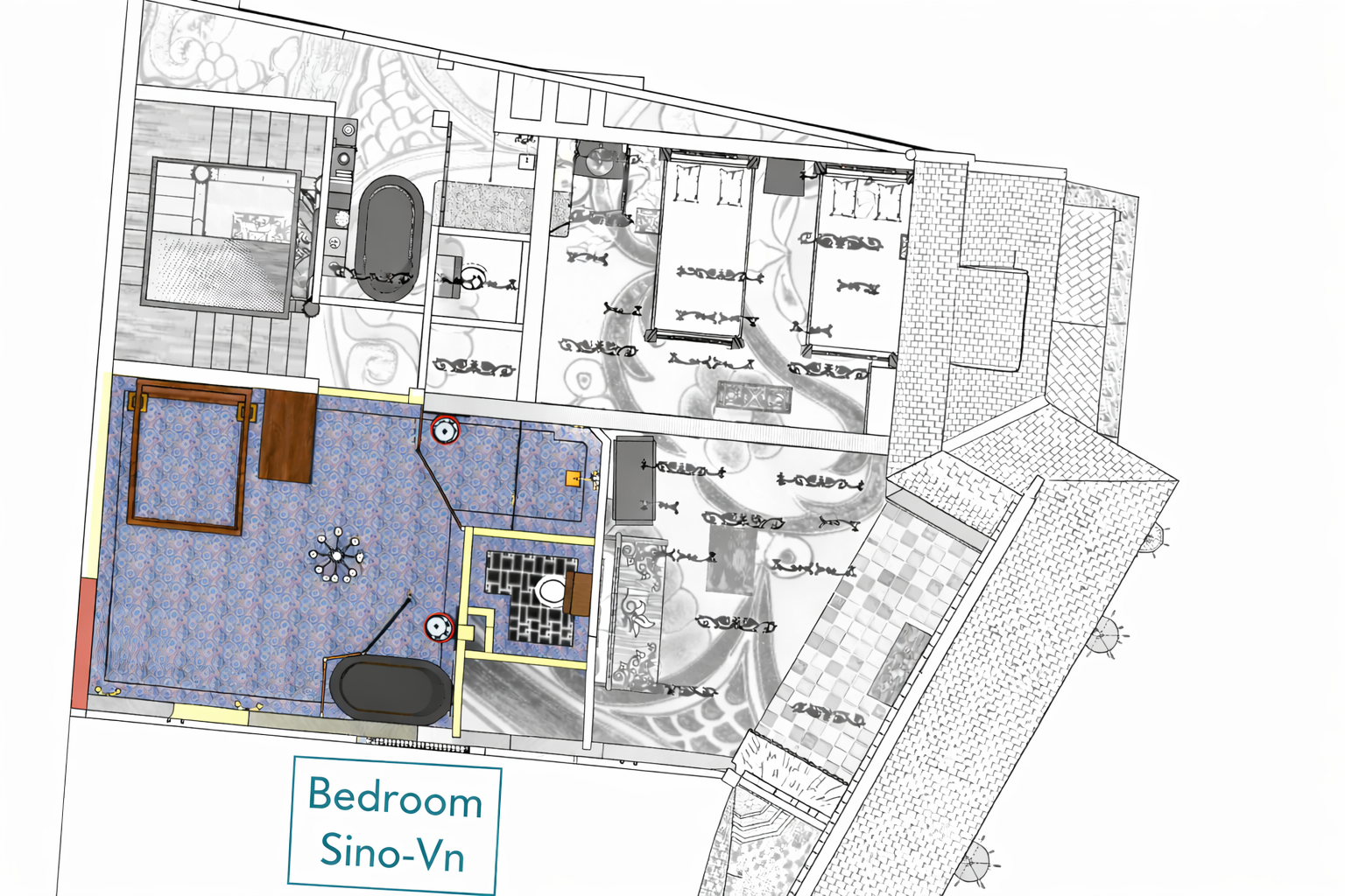 3rd floor Sino-Vietnamese style, 28 m², 160 cm bed, copper bathtub, antique lavabo. Read aesthetical description